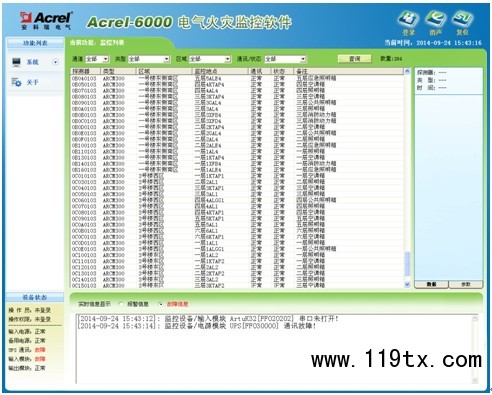 Acrel-6000系列監(jiān)控設(shè)備是整個(gè)電氣火災(zāi)監(jiān)控的最頂端,可連接多臺(tái)ARCM系列探測(cè)器,組成一套功能齊全的電氣火災(zāi)監(jiān)控系統(tǒng),具有聲光報(bào)警功能,并同步顯示報(bào)警回路,其報(bào)警信息可以保存12個(gè)月以上,后備不間斷電源可以保證市電失電后連續(xù)運(yùn)行4小時(shí)以上,監(jiān)控系統(tǒng)分為壁掛式、琴臺(tái)式和柜體式3種,有效通訊距離可達(dá)1200多米,多臺(tái)設(shè)備之間或者設(shè)備和其他系統(tǒng)如報(bào)警與消防聯(lián)動(dòng)系統(tǒng)、電力監(jiān)控系統(tǒng)等可進(jìn)行數(shù)據(jù)交換。并且該系列監(jiān)控設(shè)備具備自檢功能,從硬件、軟件、通訊線路、電源各個(gè)方面進(jìn)行系統(tǒng)自檢,以隨時(shí)掌握系統(tǒng)產(chǎn)品運(yùn)行狀態(tài),保證系統(tǒng)運(yùn)行的可靠性。