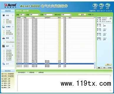 本套上位機軟件Acrel-6000電氣火災系統。主要有以下功能特點:友好的人機界面,可實時和定時采集現場設備的剩余電流數據,并有報警提示聲光報警等功能。客戶可根據實際需要對漏電流報警值進行設置,報警故障解除時,可遠方進行復位。系統可對報警事件、日期、報警值、越線值進行記錄,并生成報表。