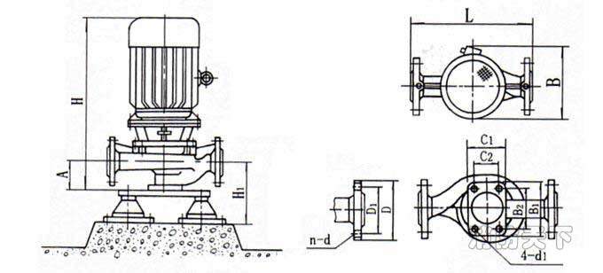 (1) ISG型單級單吸管道離心泵為立式結(jié)構(gòu),進出口口徑相同,且位于同一中心線上,可象閥門一樣安裝于管路之中,外形緊湊美觀,占地面積小,建筑投入低,如加上防護罩則可置于戶外使用。