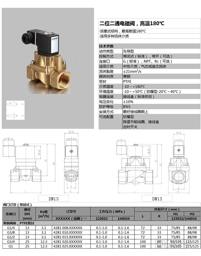 德國萊克LIK品牌:進(jìn)口黃銅電磁閥閥體采用鍛壓成型,內(nèi)件不銹鋼制作,用于管路中對水、油品、氣體等介質(zhì)通斷的自動控制。