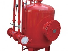 該裝置與自動噴水滅火系統中的濕式報警閥或雨淋報警閥組合起來,當發生火災時:自動噴淋系統啟動,同時該裝置上的電磁閥啟動,系統水經裝置上比例混合器與水成膜泡沫原液混合形成水成膜泡沫混合液(3%或6%),混合液通過灑水噴頭噴到受保護區進行滅火。噴灑后水成膜泡沫在物體上形成一層特有的防護膜,由于該膜能起到隔絕、降溫、抑制的作用,使得與其他滅火系統相比,該系統更能迅速撲滅油類及A、B類混合火災,并有效的防止復燃。本系統可廣泛用于停車場、車庫、柴油機房、發電機房、鍋爐房等。