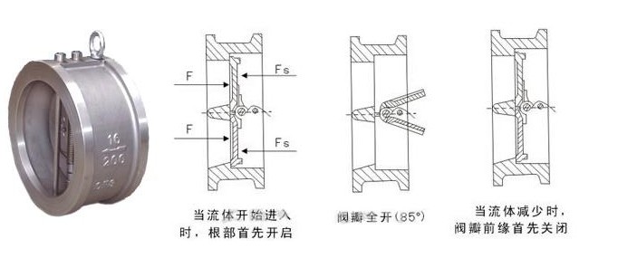 對夾止回閥產用于純凈管路及工業、環保、水處理、高層建筑給排水管路,阻止介質逆向流動之用。該止回閥采用對夾式連接,蝶板為兩個半圓,也叫雙瓣止回閥,采用彈簧強制復位,閥門打開時雙瓣成蝶形,也稱作蝶形止回閥,其密封面可為本體堆焊耐磨材料或襯橡膠,使用范圍廣,密封可靠。蝶型雙瓣式止回閥產品特點:
