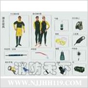 濕式:濕式潛水服、呼吸器、呼吸管、面鏡、潛水刀、氣瓶、浮力背心、潛水手套、潛水鞋、腳蹼、壓鉛、壓鉛帶、三連表、潛水包