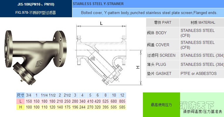 東光不銹鋼Y型過濾器FIG.978 東光走水過濾器 100目不銹鋼過濾器
