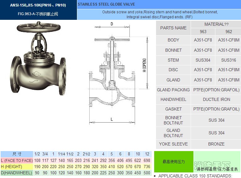 正品臺灣東光不銹鋼截止閥FIG.963A 水油蒸氣瓦斯不銹鋼截止閥