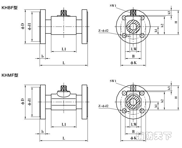 ① 系列代號(hào):KHBF(KHMF)系列法蘭式球閥
