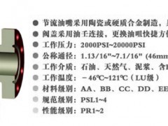 節(jié)流閥的設(shè)計(jì)符合 API Spec 6A 和 API Spec 16C 要求,按結(jié)構(gòu)形式可分為可調(diào)式節(jié)流閥和固定式節(jié)流閥,按動(dòng)作原理分為手動(dòng)節(jié)流閥和液動(dòng)節(jié)流閥,按功能可分為針形節(jié)流閥、筒形節(jié)流閥、籠套式可調(diào)式節(jié)流閥、孔板式可調(diào)式節(jié)流閥、楔式可調(diào)式節(jié)流閥。主要用于采油(氣)井口裝置作油(氣)量調(diào)節(jié),以及用于節(jié)流壓井管匯中控制井內(nèi)流體套管壓力,其閥座、閥芯均采用硬質(zhì)合金制造,具有耐沖蝕、耐磨耐腐性能。
