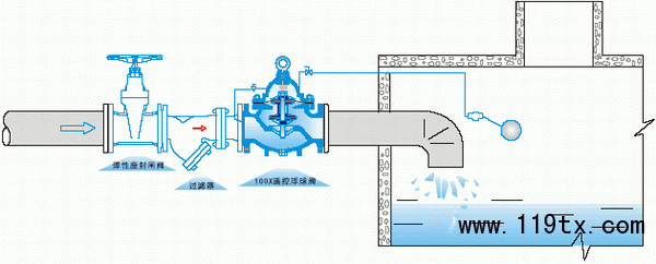 100X遙控浮球閥安裝示意圖:
