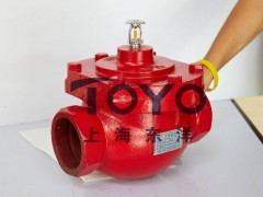 ZSFW型溫感雨淋閥主要的規格: 公稱口徑:DN32-80mm; 連接方式:法蘭、螺紋; 工作壓力:0.1~1.2Mpa; 公稱動作溫度:57℃、68℃、79℃、93℃; ZSFW型溫感雨淋閥設計、安裝、操作、維護須知: 1. 2.本閥出口端通過異徑三通可裝接入2-4水幕噴頭或開式噴頭。 3.水源供水支管上應設閘閥或蝶閥,供調試檢修用。 4.本閥感溫噴頭動作,啟動灑水滅火后,只須關閉水源換上新的感溫噴頭再打開水源好可回復為待用狀態。 5.用戶可根據需要在感溫噴頭與閥體之間加長距離,但長度不宜過長。 6.本閥在最初上水時,由于要等控制腔充茫水后才能完全密封,故可能有少許水從開式(水幕)噴頭處滲漏,屬正常現象。如用戶加長噴頭與閥體間距離后,第一次上水的滲漏量亦有增加,也為合理現象。 ZSFW型溫感雨淋閥安裝示意圖: