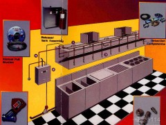 3、滅火同時關閉燃氣閥、聲光報警、把信息傳給中控室,藥劑噴灑完畢10秒鐘內,水流閥自動打開,把水噴向灶具及煙道開始降溫,五項工作同時進行,僅用1分鐘;