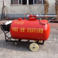 PY系列移動式泡沫滅火裝置(又稱作半固定式泡沫滅火裝置)是一種輕便移動靈活的推車式滅火設備。它采用PHF型管線(負壓)式比例混合器,可與泡沫槍及泡沫產生器組成低、中、高倍數泡沫滅火系統,對大型的固定式泡沫滅火系統能起到有效的輔助和補充作用。本裝置可由消防管網或城市供水管網、消防車、手抬泵等提供壓力水,當壓力水經過混合器時,水跟泡沫液按一定比例混合,經泡沫槍、泡沫產生器噴射泡沫撲滅火災。本產品適用于固體物資倉庫、易燃液體倉庫、鍋爐房、地下建筑工程、車庫、船艙等消防場所。