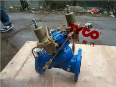 當出口壓力降到導閥設定壓力時導閥開啟,控制室向下游排水。由于導閥的排水量大于針閥的進水量,主閥控制室壓力下降,進口壓力使主閥開啟。穩定狀態下,控制室進水、排水相同,開度不變,出口壓力不變。調節導閥彈簧即可設定出口壓力。