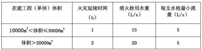 5.3.9 在建工程的臨時(shí)室內(nèi)消防用水量不應(yīng)小于表5.3.9 的規(guī)定: