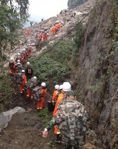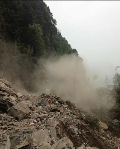 消防天下網訊 消防官兵行進途中不時遭遇余震,巨石滾落引發滾滾煙塵,而這樣的地方,距離徒步前往地震災區的消防官兵不足50米。
