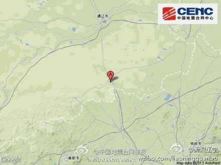 核心提示:中國地震臺網正式測定:04月22日17時11分在內蒙古自治區通遼市科爾沁左翼后旗、遼寧省阜新市彰武縣交界(北緯42.9度,東經122.4度)發生5.3級地震,震源深度6千米,震中距離通遼市區約80公里。