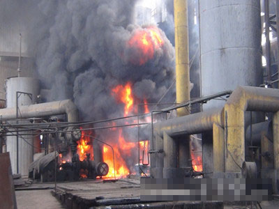 據現場工人介紹,起火的是廠內的煤氣站,主要生產煤氣,并生產部分煤焦油。事發時,生產用的水池旁一個水泵漏水,一名工人正在進行維修,由于生銹,于是用電焊槍進行作業。火星濺落在附近累積的煤焦油水垢上起火,并迅速將整個水池表面的煤焦油引燃,引發了大火。正在作業的工人立即用水和滅火器進行滅火,無奈火勢太大,收效甚微。