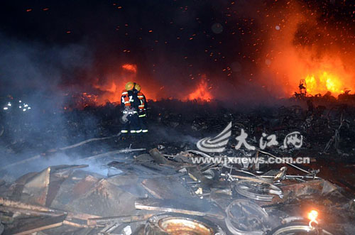 7月14日凌晨4時許,位于南昌市昌東大道邊上的一家車輛零部件回收站突發大火。