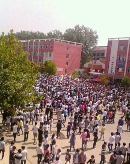 2013年9月14日,河南省商丘市柘城縣二高學(xué)生打砸學(xué)校,抗議學(xué)校封校制度以及校內(nèi)食堂、超市出售高價(jià)食品。