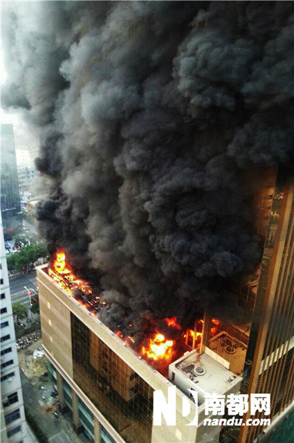 目擊者稱,昨天下午5時(shí)許聽(tīng)到外面有人大喊“起火啦”,“抬頭一看就發(fā)現(xiàn)對(duì)面大廈冒起滾滾濃煙,片刻之后就看到明火,火勢(shì)太大了”。