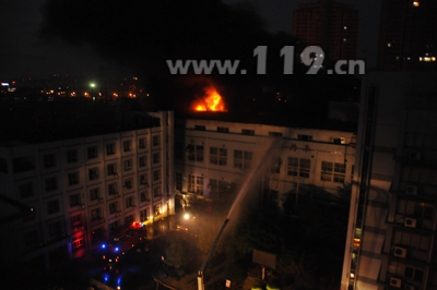 接警后,消防迅速趕往撲救。出動7個中隊(duì)17輛消防車共100余名消防員到場施救。
