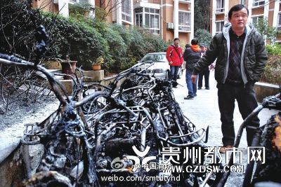 1月2日凌晨,貴陽市云巖區(qū)曦陽山莊單元樓下的8輛電瓶車瞬間火光沖天,爆炸聲此起彼伏,大火伴隨濃煙,瞬間升騰到百米高空。