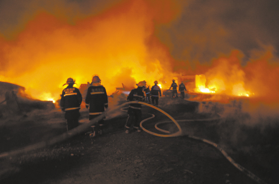 據開發區消防大隊的消防隊員證實,起火原因就是因為這輛大貨車經過路邊的電線桿時,扯斷了電線,產生了火苗,“由于泡沫廠里面堆放的都是泡沫等易燃材料,加上廠房又是簡易搭建的,一有火苗就容易著火,而且火勢蔓延也很迅猛。”消防員說。