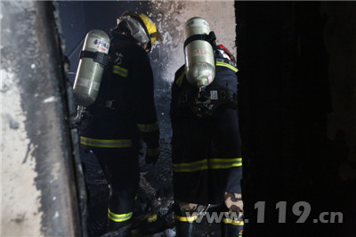 消防部門到場后了解到,由于火災發(fā)生時大樓的電源會自動切斷,導致小區(qū)3名保安在前往救火的途中被困電梯內(nèi),濃煙已經(jīng)彌漫進走廊,情況十分危急。消防人員在確認了被困樓層后立即攜帶破拆器材營救被困人員,由于現(xiàn)場濃煙較大,各種噪聲給搜救工作帶來了一定困難,在9樓到10樓之間,消防人員發(fā)現(xiàn)被困人員,并利用撬棍打開電梯將3名保安救出,所幸被困保安只是吸入了較多濃煙并無生命大礙,仍然可以行走,被樓下的120救護車送往醫(yī)院進一步檢查。