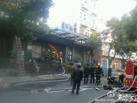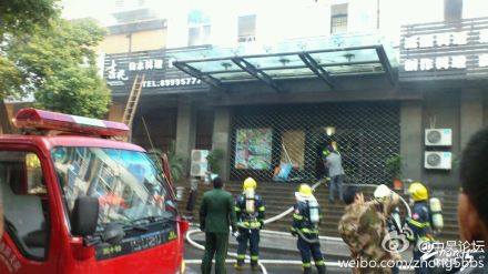 消防員們已經(jīng)趕到了現(xiàn)場,從店中搬出很多個煤氣罐,防止發(fā)生更大的事故!