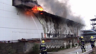3分鐘后,消防官兵趕到現(xiàn)場,指揮員勘察現(xiàn)場發(fā)現(xiàn)著火處在五多米高的的房頂,房頂為塑料和鐵皮遮蓋著,火勢正不斷向邊上蔓延還不時(shí)有火星、鐵皮碎片往下墜落,如不及時(shí)處置,火勢將會蔓延至整個廠房屋頂,后果不堪設(shè)想。指揮員當(dāng)機(jī)立斷,頭車、二車各出兩支水槍,分別向廠房房頂進(jìn)行壓制,防止火勢蔓延。