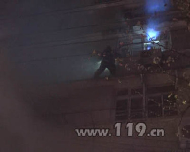 搜救小組進入房屋內(nèi)部后,逐間搜索被困人員,并將窗戶全部打開進行排煙。搜救進行大概2分鐘后,消防官兵發(fā)現(xiàn)一對母子被困在房屋內(nèi),其中母親由于過度緊張昏厥,已喪失自我逃生能力。中隊救援官兵立即將空氣呼吸器給其帶上。隨后,迅速利用拉梯將母子從逐一轉(zhuǎn)移到安全地帶。