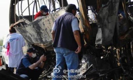墨西哥韋拉克魯斯州警方稱,當(dāng)?shù)貢r(shí)間4月13日凌晨2時(shí)許,在韋拉克魯斯州的高速公路上,一輛駛往首都墨西哥城的長途公共汽車與一輛停在路邊的破舊的大貨車后部猛烈相撞,導(dǎo)致長途公共汽車起火并劇烈燃燒。