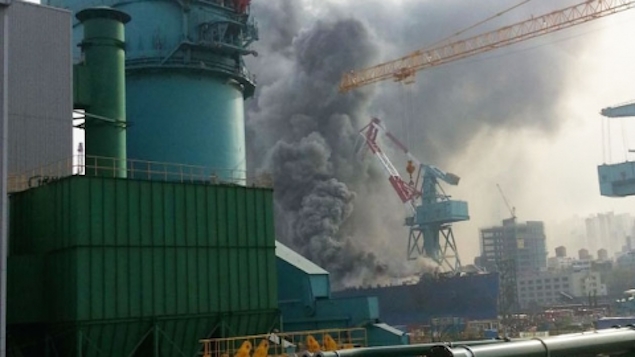 昨天下午4點左右,現代重工蔚山船廠一在建LPG發生火災。起火地點是建造LPG船的5號船塢。