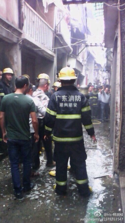 網友消息:今天中午,庵埠老市場寨內桶街橫巷發生火災。