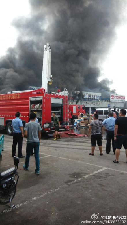 網友消息:今天中午,朝陽區小紅門橋國際汽配城突發火災。
