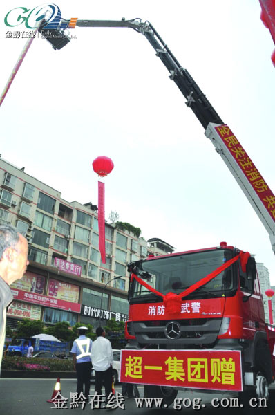 6月10日,貴州超一集團將一臺價值450萬元的消防登高車,贈送給仁懷消防大隊,記者了解到,這是目前貴州省可登高度最高的一臺消防登高車。車身長13.5米,高4米,寬2.5米;最大作業高度為56米;帶有消防液罐,可載水2.5噸,有兩個水炮,可實現高空和地面滅火作業;工作平臺載重400公斤,可繞曲臂45度偏轉。(來源:金黔在線-貴州都市報 作者:劉鴻 消防天下)