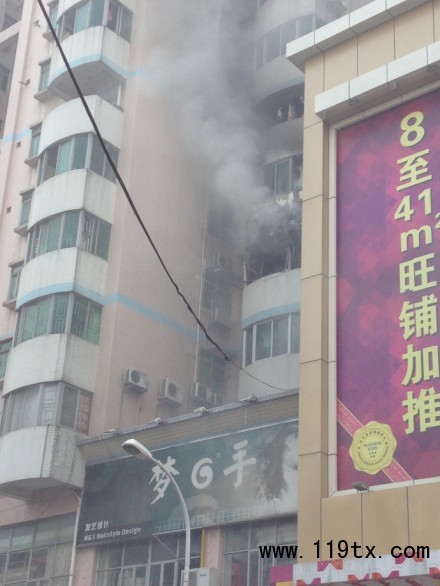 消防員從樓下和旁邊樓頂往出事單位噴水,現在火勢已被控制。
