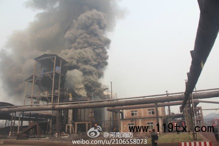 昨天上午9點左右,安陽市北外環恒坤礦產品公司一過濾煤氣罐體內壁殘余煤焦油著火。