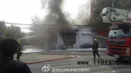 今天中午2點左右,華北水利水電大學(xué)花園校區(qū)七號宿舍樓旁供電室著火。