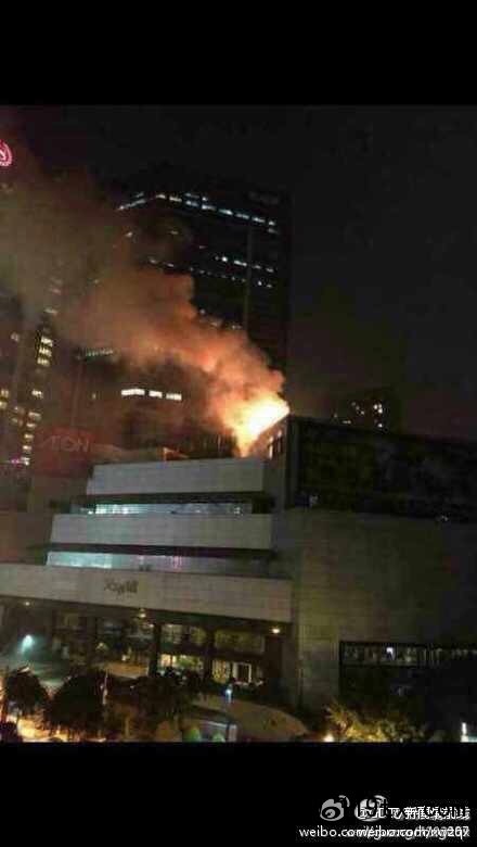 網(wǎng)友消息:昨天晚上11點(diǎn)左右,廣州天河城頂樓天臺(tái)東側(cè)冷卻塔位置突發(fā)火災(zāi)。