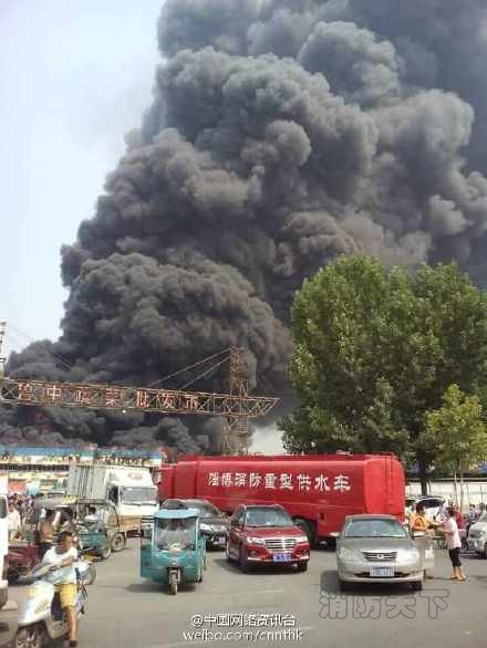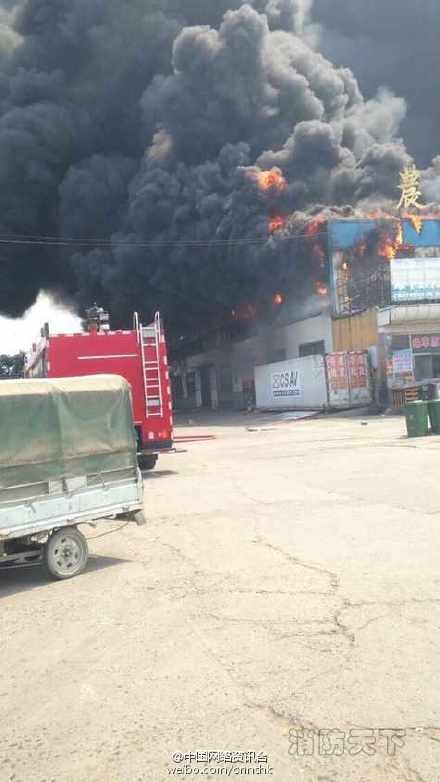 今天下午1點半左右,淄博魯中蔬菜批發市場一攤點起火。