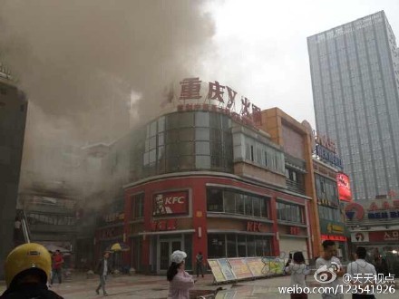 核心提示: 網友消息:今天上午,寶雞高新四路人人樂旁邊重慶火鍋店疑似發生火災。 肯德基樓上的重慶火鍋店樓頂冒出陣陣濃煙