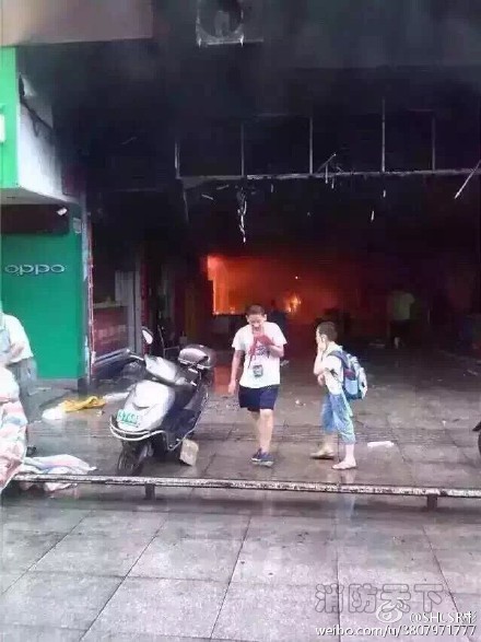 據目擊者稱,是樓下超市起火殃及樓上幼兒園。只見大火迅猛,濃煙滾滾,樓梯被大火吞噬,只能從二樓窗戶把孩子抱下來。