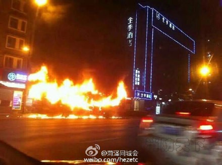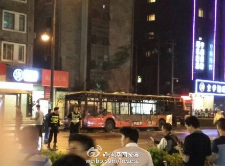 公交車只燒剩個車架,事故造成6名乘客受傷。