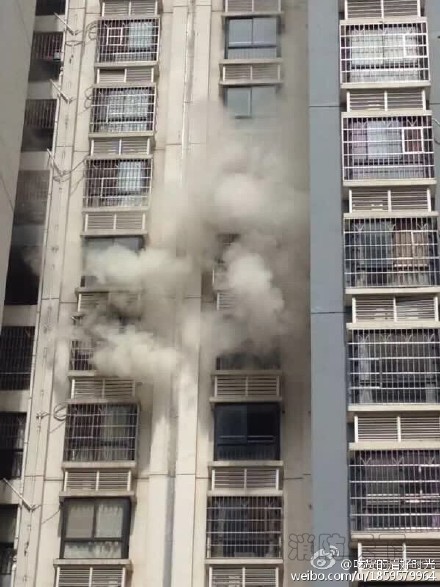 網友消息:今天中午,玉林公務員小區賞菊園一高樓層突發火災。