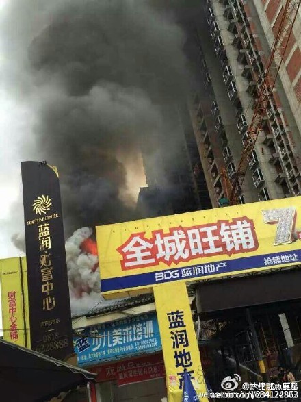 起火樓房位于大竹十字街,財富中心小區旁,現場濃煙滾滾,火光沖天。
