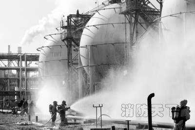 特勤大隊查明泄漏情況,采取正確工藝措施,稀釋控制泄漏氣體擴散方向,適時對泄漏點進行封堵。利用大噸位水罐車組成供水編隊為廠區儲水罐進行補充供水。