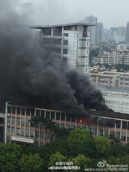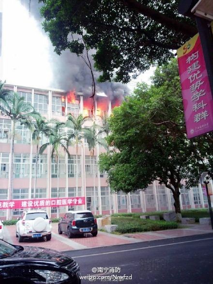 今天中午10點44分左右,廣西醫科大學圖書館四樓電子閱覽室著火。