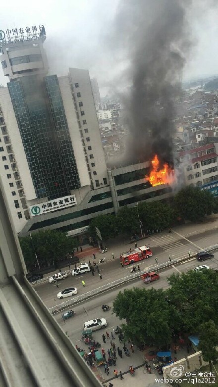 網友消息:今天中午11點左右,廣西貴港人民醫院對面農業銀行樓上著火。