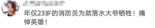 得知老人落水原因及犧牲消防員年僅23歲后,網(wǎng)友一邊痛心,一邊卻又出現(xiàn)了指責(zé)質(zhì)疑的聲音,有人指責(zé)老人對(duì)自己不負(fù)責(zé),還有人認(rèn)為消防員這樣做不值: