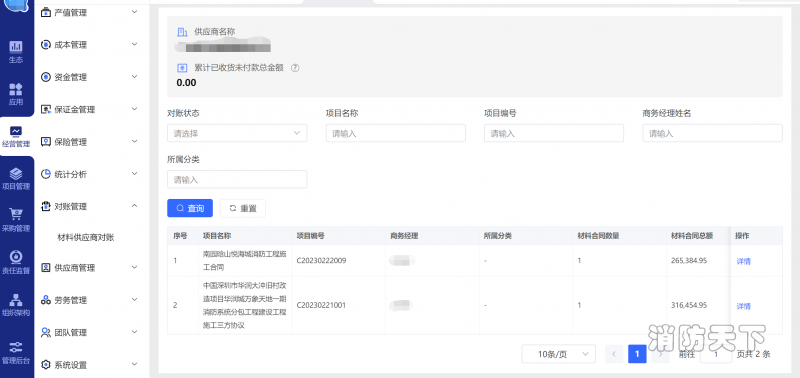 應用領筑工程管理系統的【對賬管理——材料供應商對賬】功能,工程企業能夠快速了解到與合作供應商的對賬情況,在線查詢,嚴格把控供應商價款支付,再結合公司和項目資金情況合理安排供應商支付計劃。